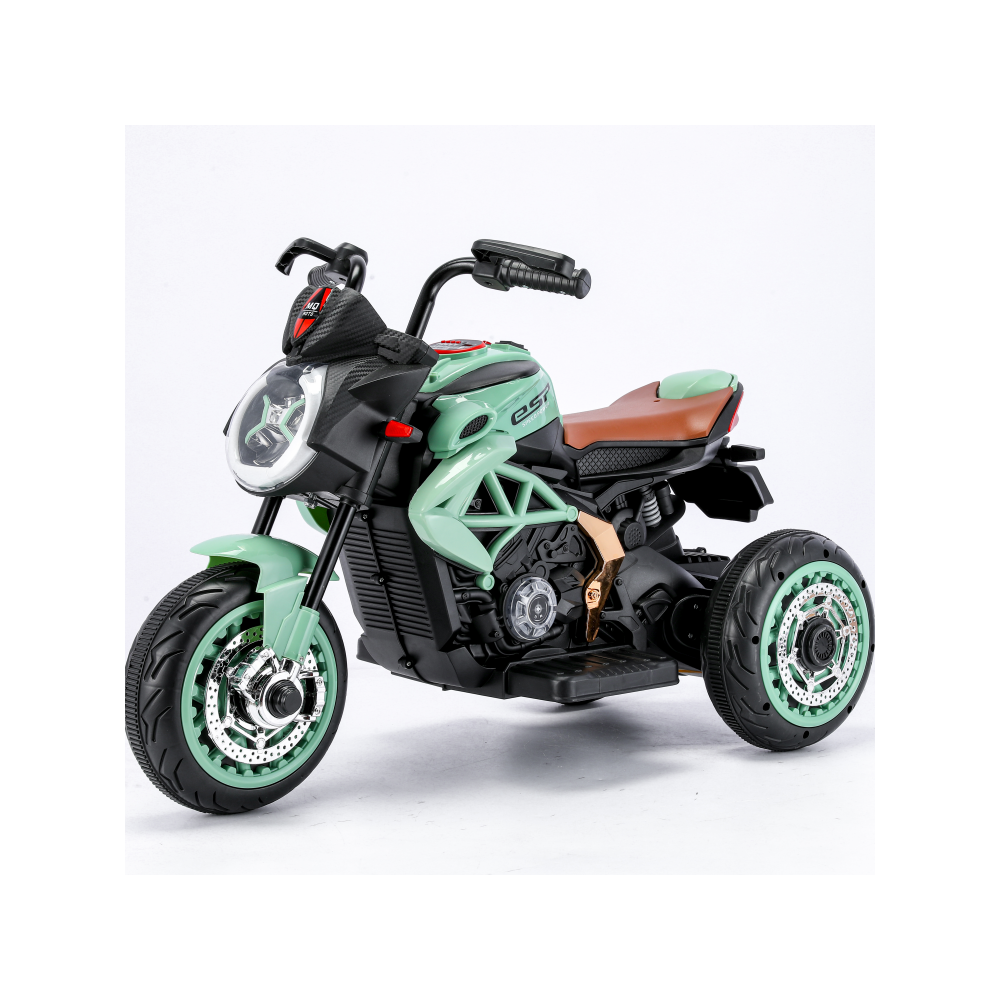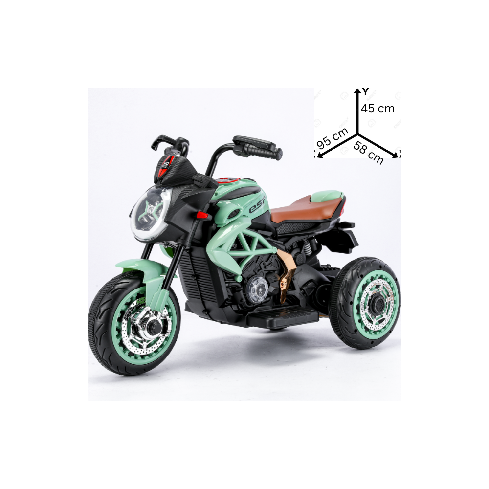 Moto électrique pour enfants au design blanc, parfaite pour une conduite stable tout-terrain.Équipée de trois roues robustes et d’un look sportif, idéale pour les jeunes aventuriers.